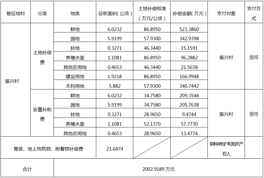 广州市花都区狮岭镇振兴村的集体土地合计21.6474公顷(合324.711亩),其中耕地6.0232公顷(合90.348亩)、园地5.9199公顷(合88.7985亩)、林地0.3271公顷(合4.9065亩)、其他农用地0.4653公顷(合6.9795亩)、养殖水面1.1081公顷(合16.6215亩)、建设用地1.9218公顷(合28.827亩)、未利用地5.882公顷(合88.23亩)。