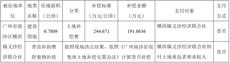 (二)本次征收土地所涉及的被安置农业人员由横沥镇义沙、长沙经济联合社以货币补偿的形式安置。请横沥镇义沙、长沙经济联合社经济联合社在本公告期内到市国土房管局南沙区分局领取办理安置农业人口征地农转非手续的函件。