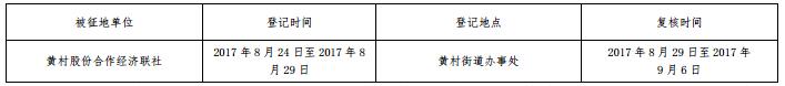 经广东省人民政府批准(粤国土资(建)字〔2017〕431号),同意将天河区黄村街黄村股份合作经济联社属下8.8610公顷集体土地征收为国有土地。现将经依法批准的《征收土地方案》、市人民政府批准的《征地补偿安置方案》内容和有关事项公告如下: