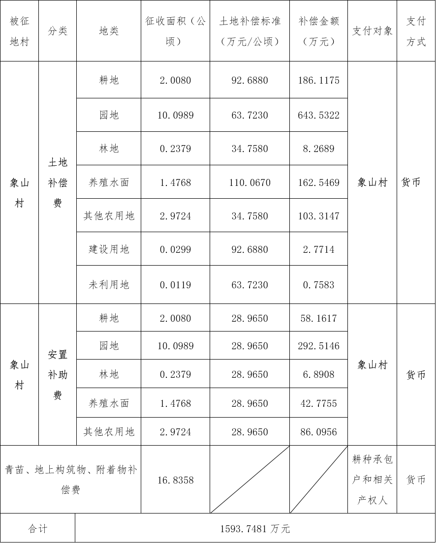 四、征地补偿安置方案: