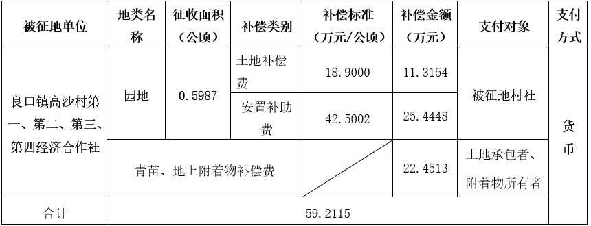 (二)本次征收土地所涉及的被安置农业人员由广州市从化区良口镇高沙村第一、第二、第三、第四经济合作社以货币补偿等形式安置。