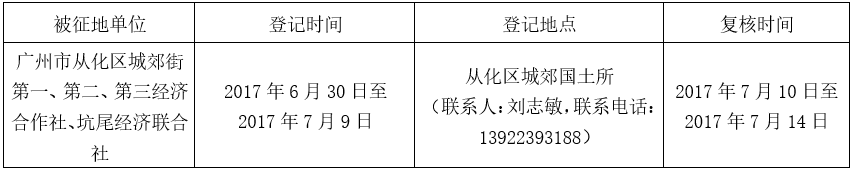 经广州市人民政府同意并经广东省人民政府批准(粤国土资(建)字[2017]16号)同意将广州市从化区城郊街坑尾村地段30.7516公顷集体土地征收为国有土地。现将经依法批准的《征收土地方案》、市人民政府批准的《征地补偿安置方案》内容和有关事项公告如下: