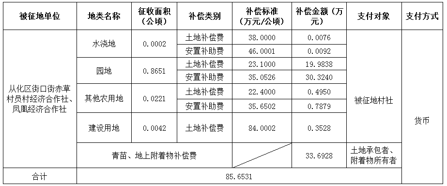 (二)本次征收土地所涉及的被安置农业人员由广州市从化区街口街赤草村员村经济合作社、凤凰经济合作社以货币补偿等形式安置。