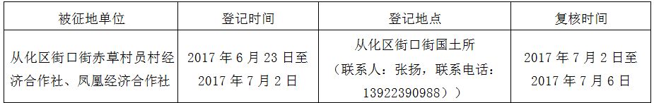 经广州市人民政府同意并经广东省人民政府批准(粤国土资(建)字〔2017〕247号)同意将广州市从化区街口街赤草村地段0.8916公顷集体土地征收为国有土地。现将经依法批准的《征收土地方案》、市人民政府批准的《征地补偿安置方案》内容和有关事项公告如下:
