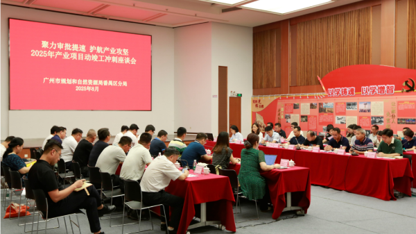 为深入贯彻落实“产业第一、制造业立市”总要求,持续兑现“月月有动工、月月有竣工”的育增量承诺,8月27日,市规划和自然资源局番禺区分局(以下简称“番禺区分局”)举办“聚力审批提速 护航产业攻坚”2025年产业项目动竣工冲刺座谈会,旨在进一步提高审批效率,优化营商环境,紧紧围绕“拼经济”中心任务集中发力。