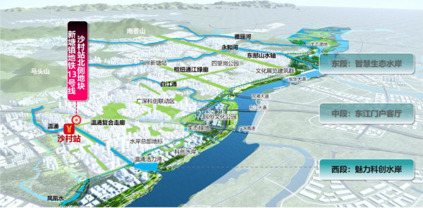 地块紧邻温涌水系,融合温涌复合走廊稀缺滨水空间,是广州东部中心“东江活力水岸”建设的重要组成部分。当前正推进开发区西区至石滩镇约40公里东江岸线贯通工程,重点打造“城景相映”的活力水岸。地块所在的西段定位为“魅力科创水岸”,将以温涌河口为核心,通过低效旧厂改造,构建开敞宽阔、富有工业景观印记的科创水岸,为居民提供亲水宜人的居住环境。