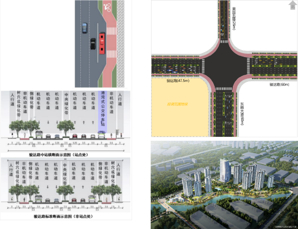 (2)“数据驱动、科学决策”:通过构建精细化交通模型,在高峰小时进行多轮叠加仿真测试。针对性提出交叉口渠化、道路断面精细化设计、公共交通优化、幼儿园交通组织优化等系列改善措施,确保交通方案可以有效支撑项目开发。
