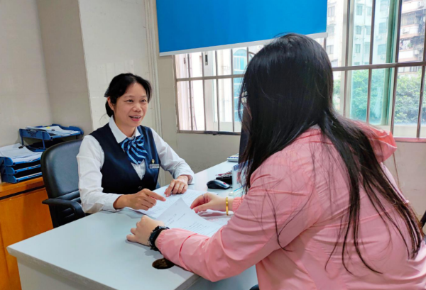 工作人员廖翠娟在“搞得掂”窗口接待群众