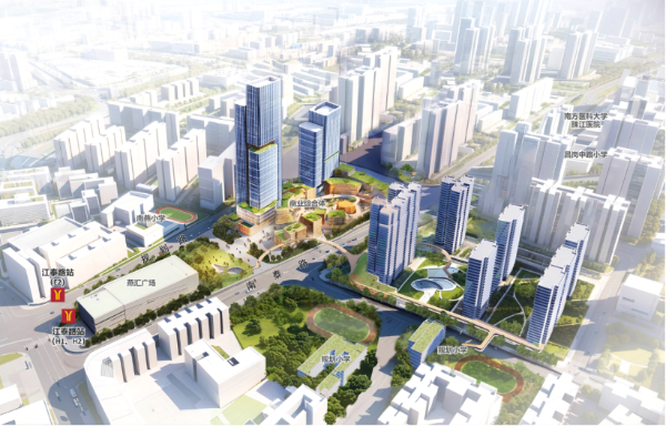 对标文商旅融合圈核心区的服务能级,项目规划建设约20万平方米的商业综合体,并结合江南大道与江南西路打造西部商业轴线,促进轴线商业氛围南延,有效拓展和优化区域产业发展空间,充分发挥产业集聚功能。