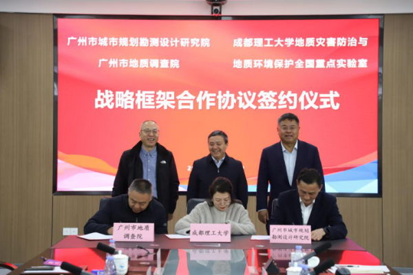 为深入贯彻习近平总书记关于防灾减灾救灾工作的重要指示精神,落实国家关于加强城市安全风险综合防范的决策部署,推动广州地质科技创新与产学研用深度融合,2025年12月10日至11日,广州市地质调查院赴成都理工大学,同成都理工大学地质灾害防治与地质环境保护全国重点实验室、广州市城市规划勘测设计研究院有限公司共同举行工作交流座谈会,并签署三方战略合作框架协议。