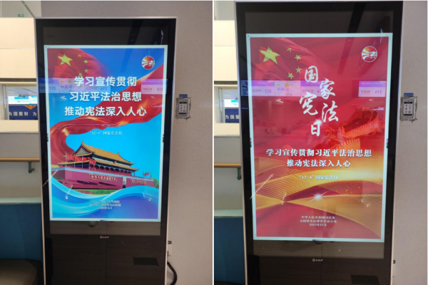 充分运用线上线下宣传载体,全方位、多角度开展宪法宣传教育。在局机关办公楼大堂电子显示屏、广告机滚动播放宪法宣传标语和公益视频;在不动产登记等对外服务大厅循环展播宪法宣传片;在各独立办公场所张贴宣传海报、悬挂横幅标语,打造沉浸式普法环境。通过立体化宣传矩阵,广泛传播宪法精神,教育引导广大干部职工和办事群众增强宪法意识,提升依法维权、依法办事的能力水平,积极营造“人人学宪法、人人讲宪法、人人守宪法”的良好社会氛围。