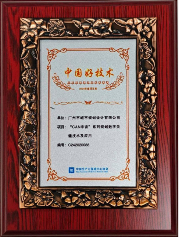 近日,由中国生产力促进中心协会主办的“中国好技术”大会暨2024年度“中国好技术”称号授予仪式在北京隆重召开。广州市城市规划设计有限公司(简称“市城规公司”)凭借自主研发的“CAN宇宙”系列规划数字关键技术及应用项目,成功入选“中国好技术”项目库-B类(新一代信息技术领域),并荣获2024年度“中国好技术”称号。