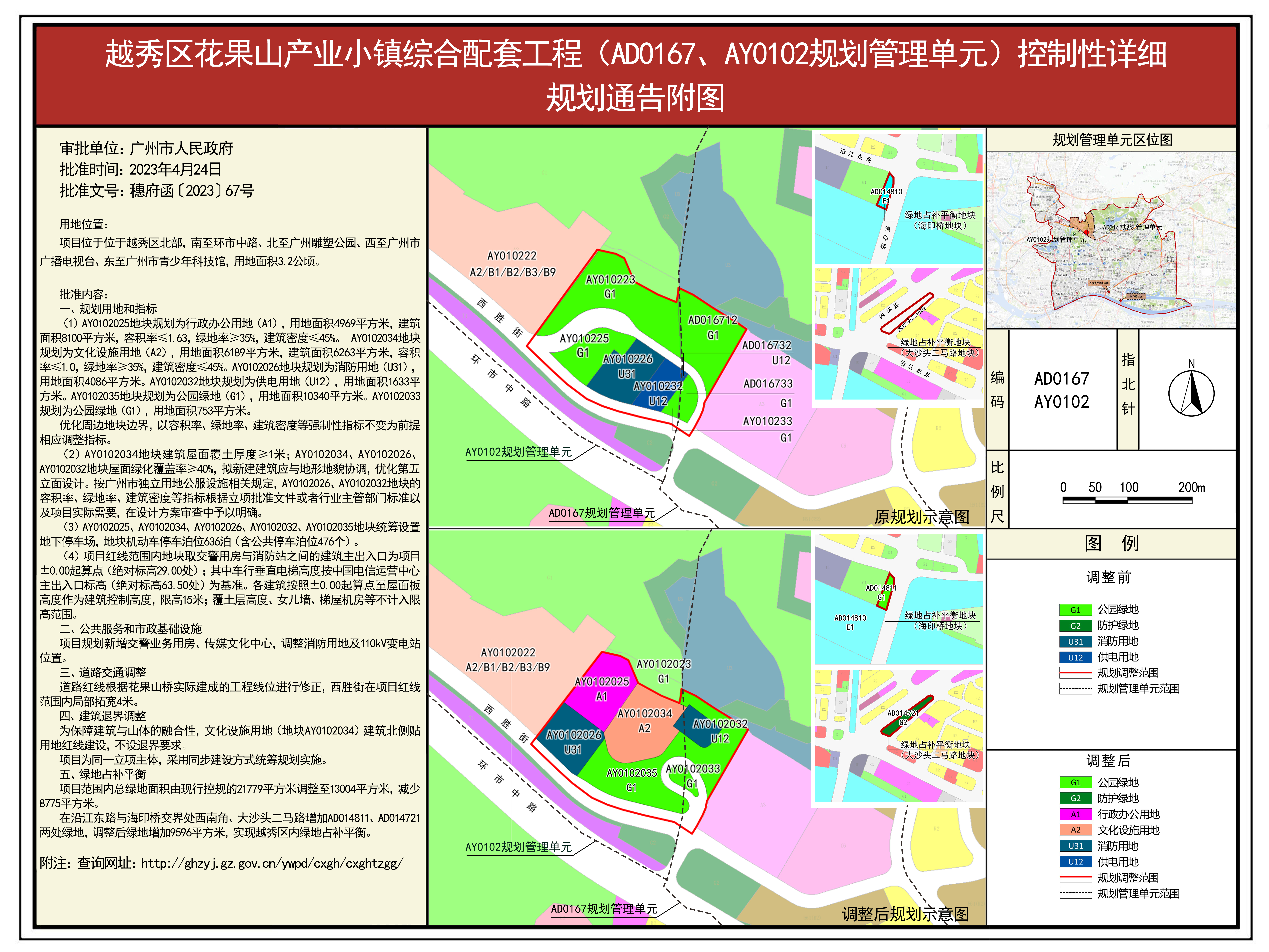附件:1.《越秀区花果山产业小镇综合配套工程(AD0167、AY0102规划管理单元)控制性详细规划》通告附图