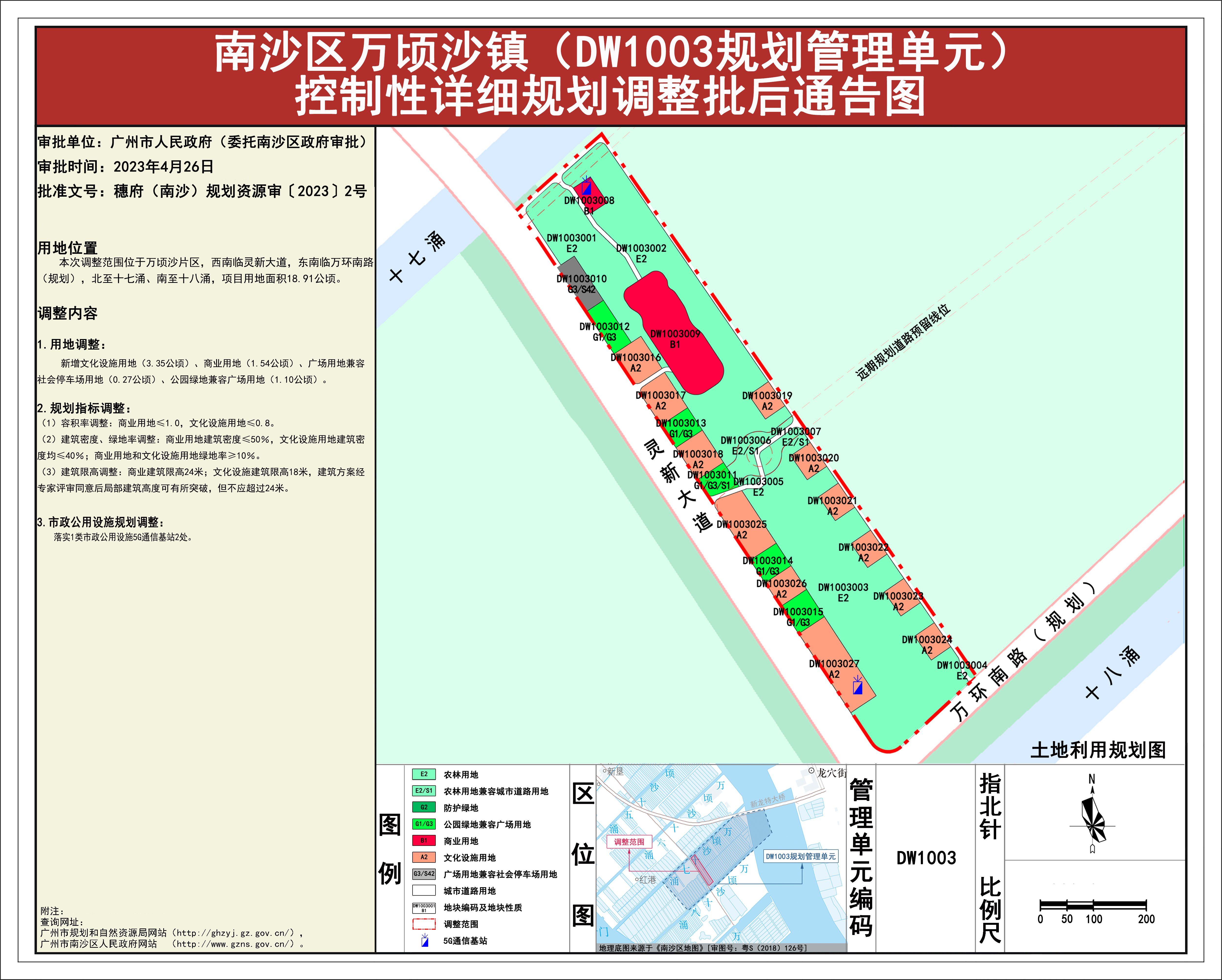 附件:1.南沙区万顷沙镇(DW1003规划管理单元)控制性详细规划调整批后通告图