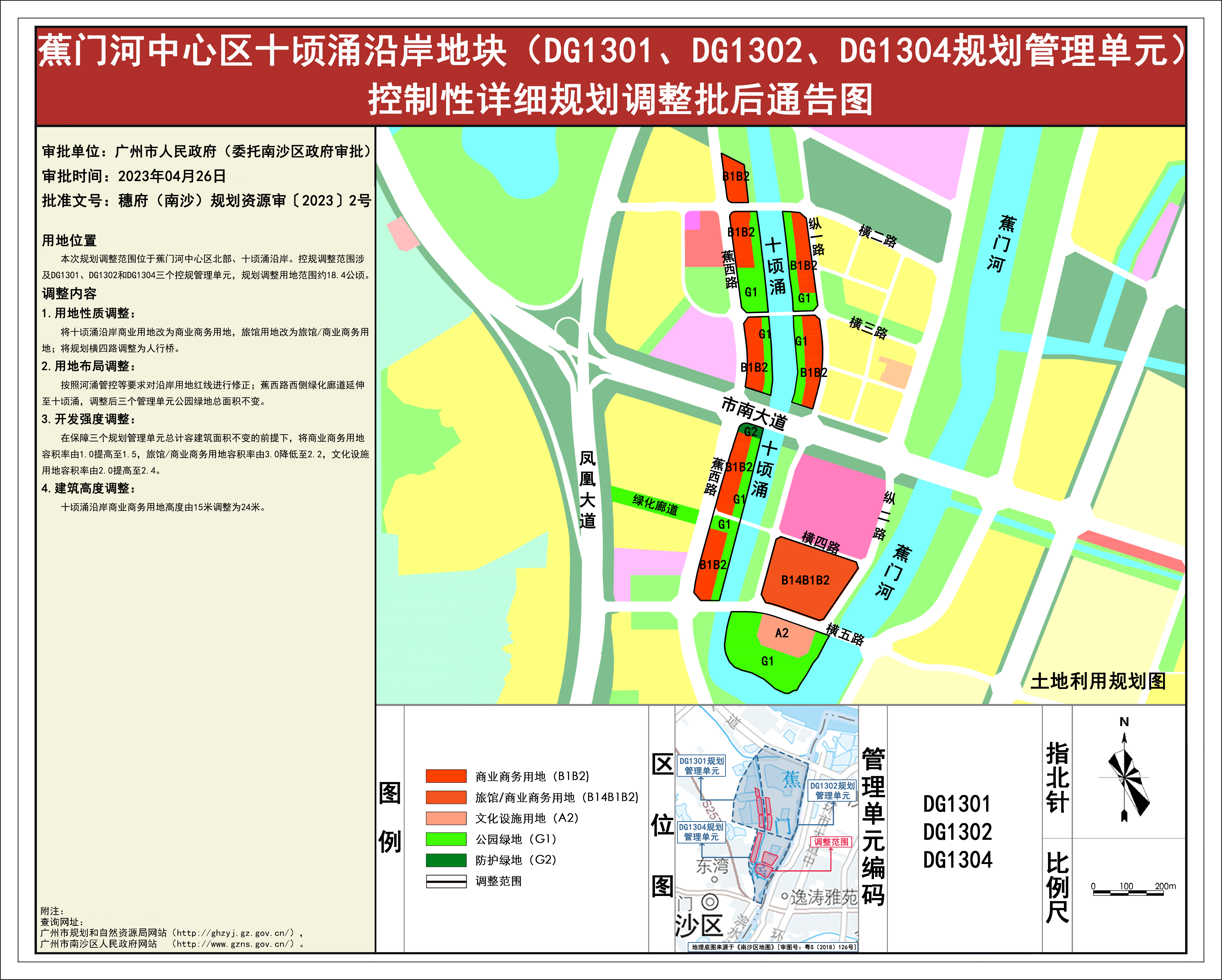 3.南沙区蕉门河中心区十顷涌沿岸地块(DG1301、DG1302、DG1304规划管理单元)控制性详细规划调整批后通告图