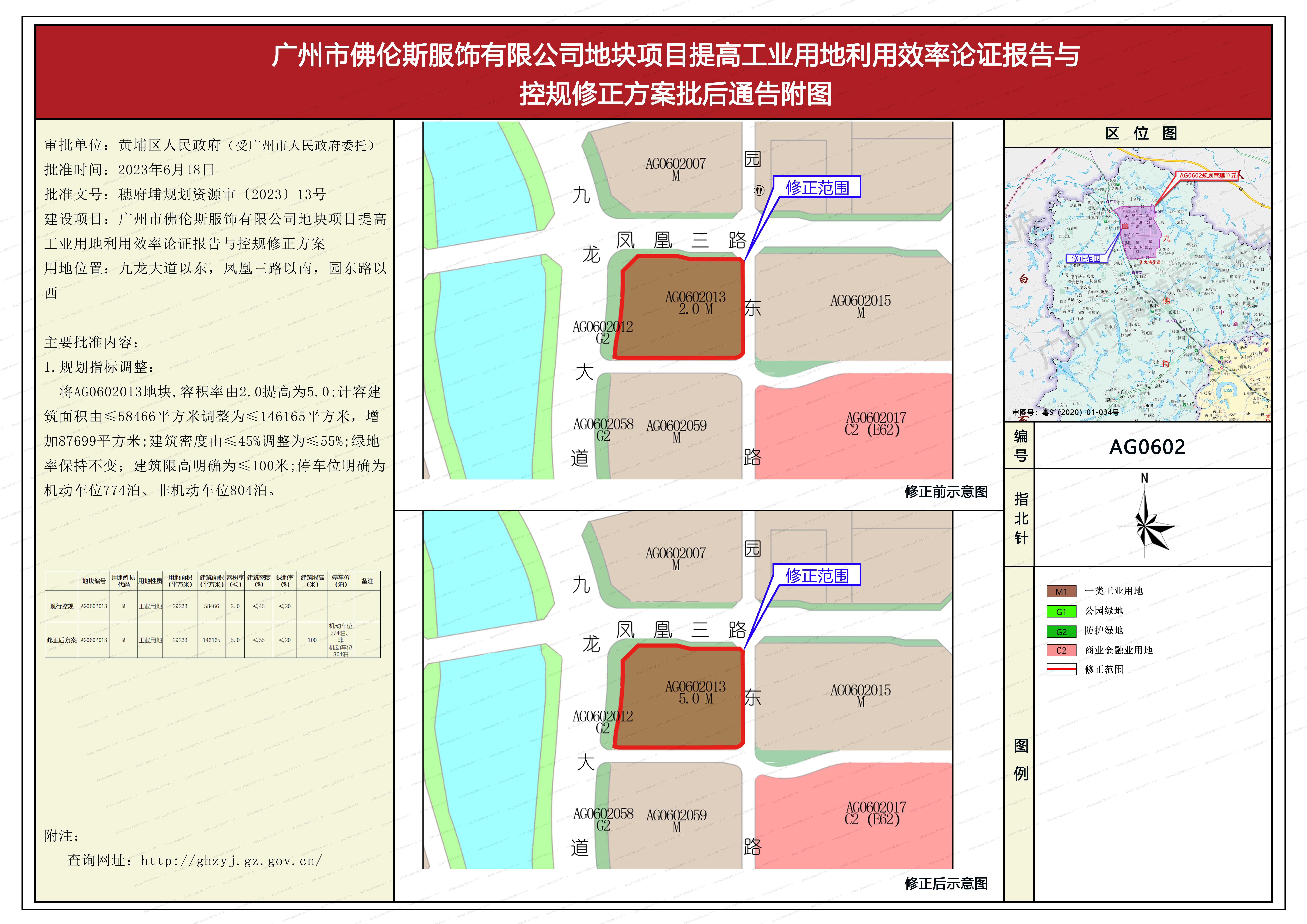 根据《广东省城市控制性详细规划管理条例》有关规定,《广州市佛伦斯服饰有限公司地块项目提高工业用地利用效率论证报告与控规修正方案》已获广州市黄埔区人民政府批准(受广州市人民政府委托)(穗府埔规划资源审〔2023〕13号),自批准之日(2023年6月18日)起生效。
