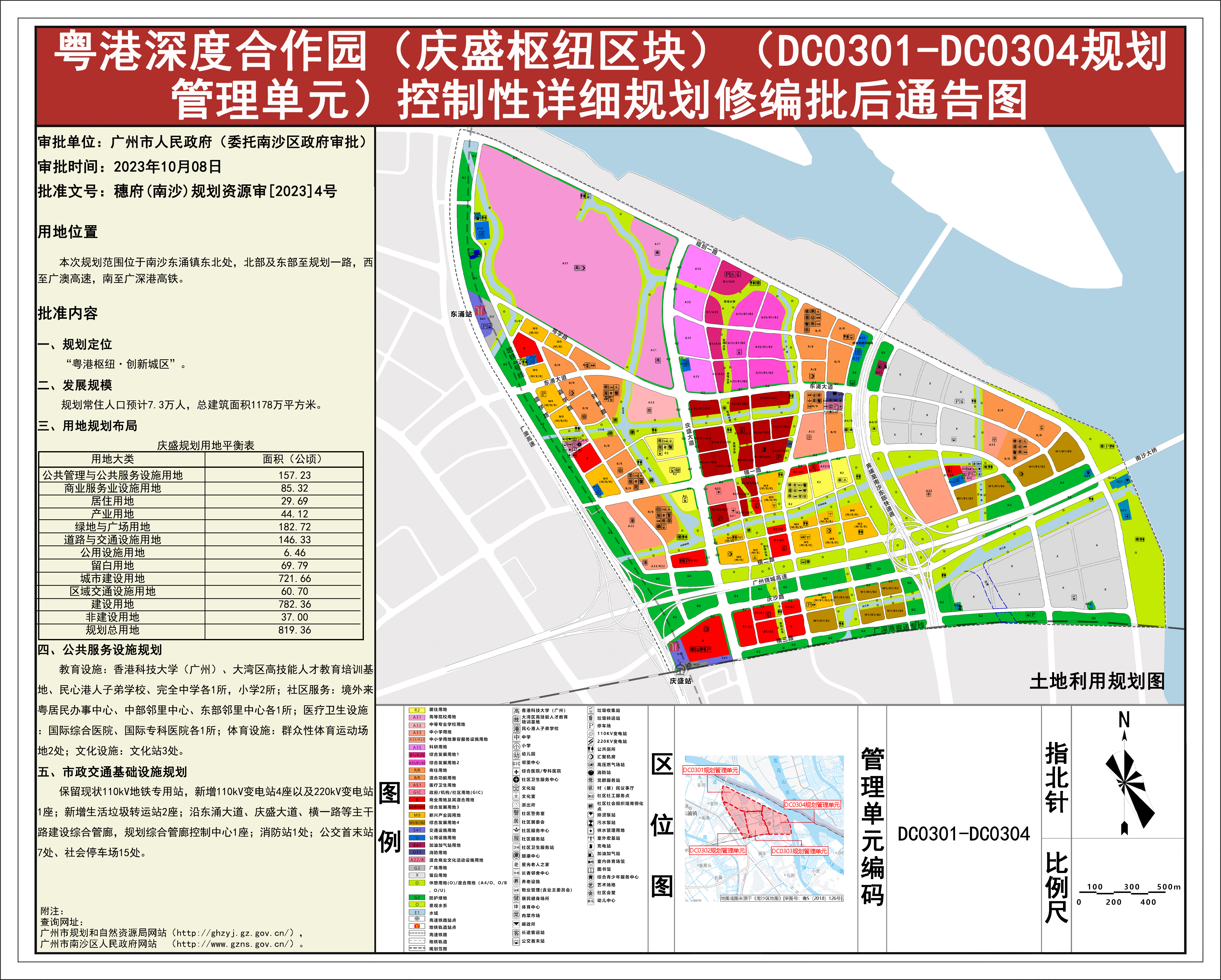 附件:1.粤港深度合作园(庆盛枢纽区块)(DC0301-DC0304规划管理单元)控制性详细规划修编批后通告图