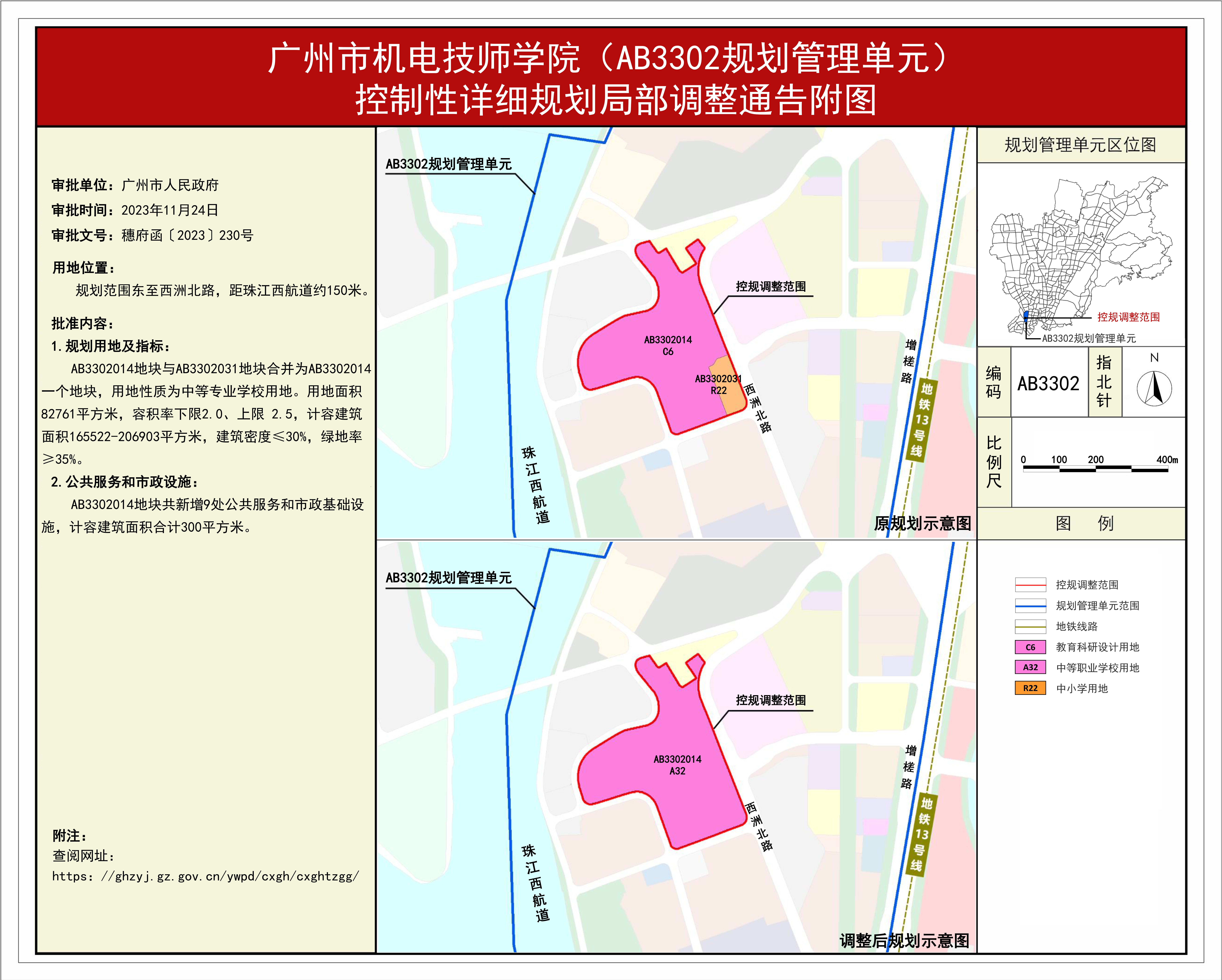 2. 《广州市机电技师学院(AB3302规划管理单元)控制性详细规划局部调整》通告附图