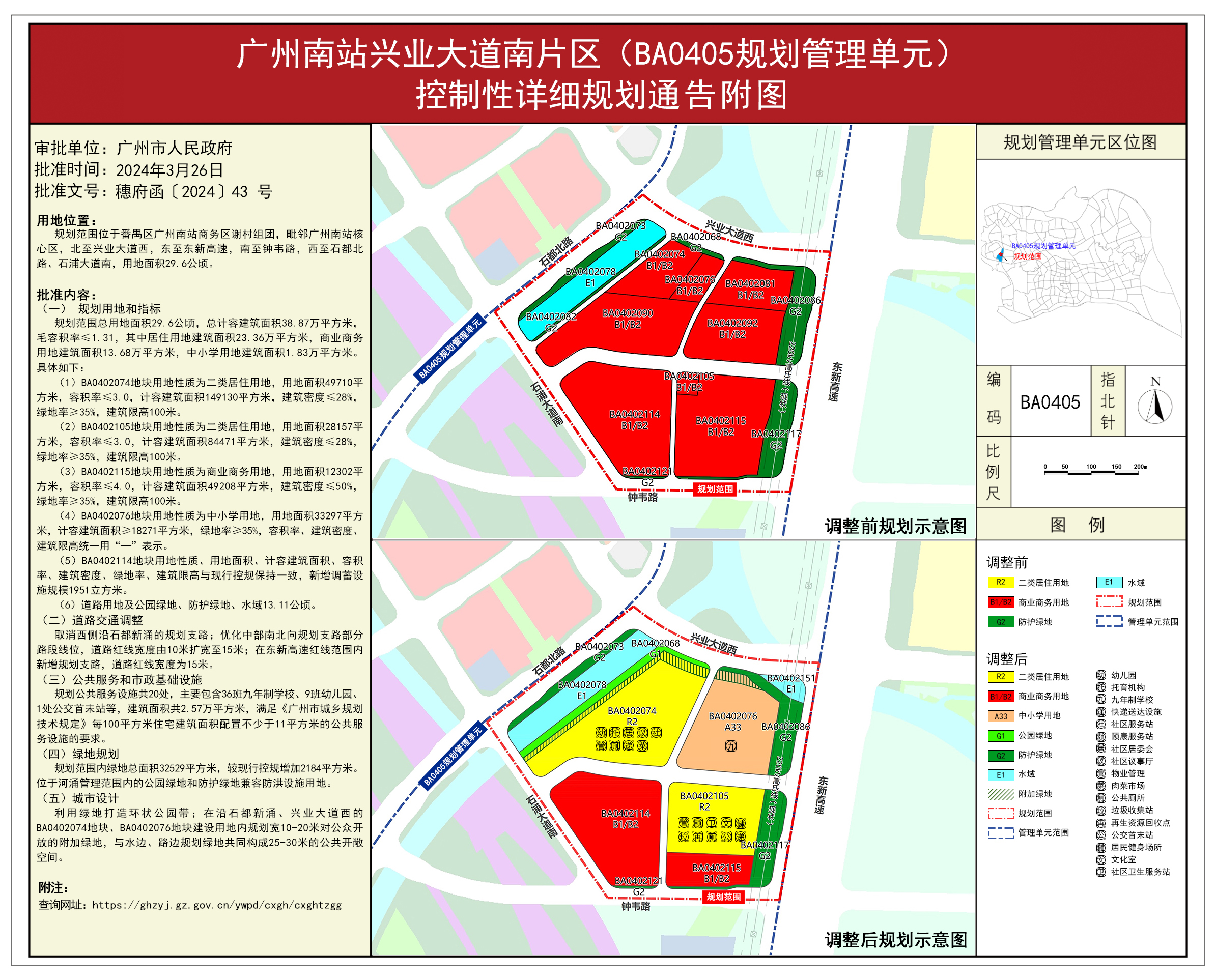 3. 《广州南站兴业大道南片区(BA0405规划管理单元)控制性详细规划》通告附图