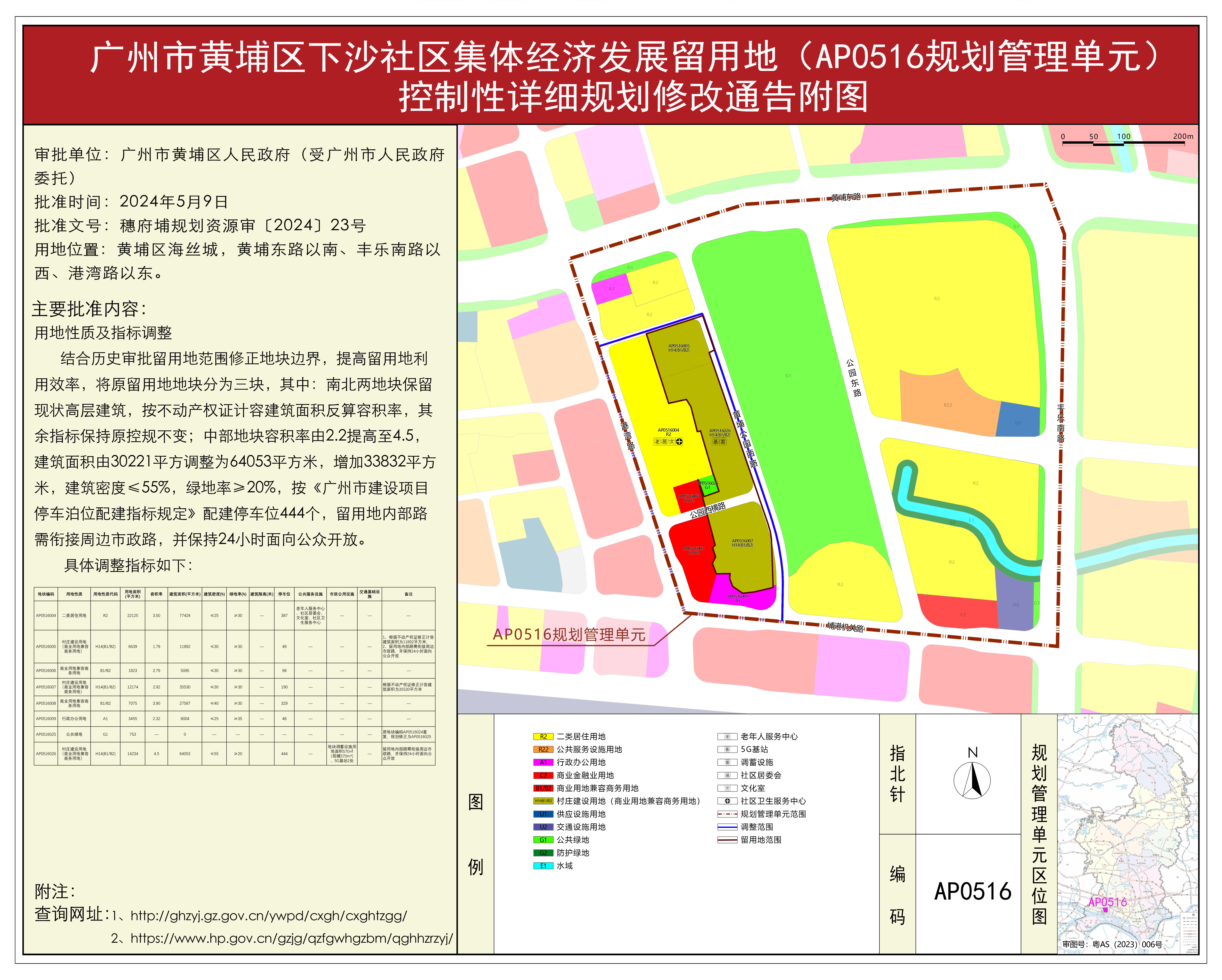 2. 广州市人民政府关于同意广州市黄埔区下沙社区集体经济发展留用地(AP0516规划管理单元)控制性详细规划修改的批复[穗府埔规划资源审〔2024〕23号]