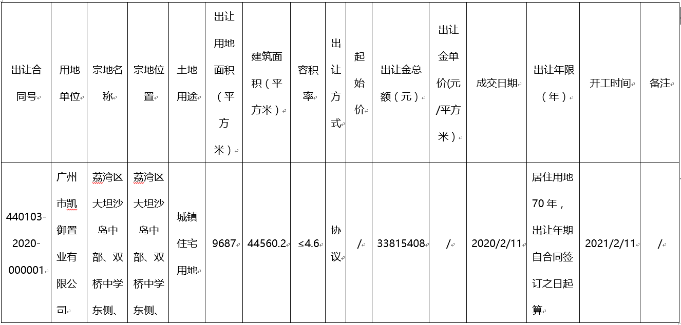 广州市国有建设用地使用权出让公告(2020年2月11日)