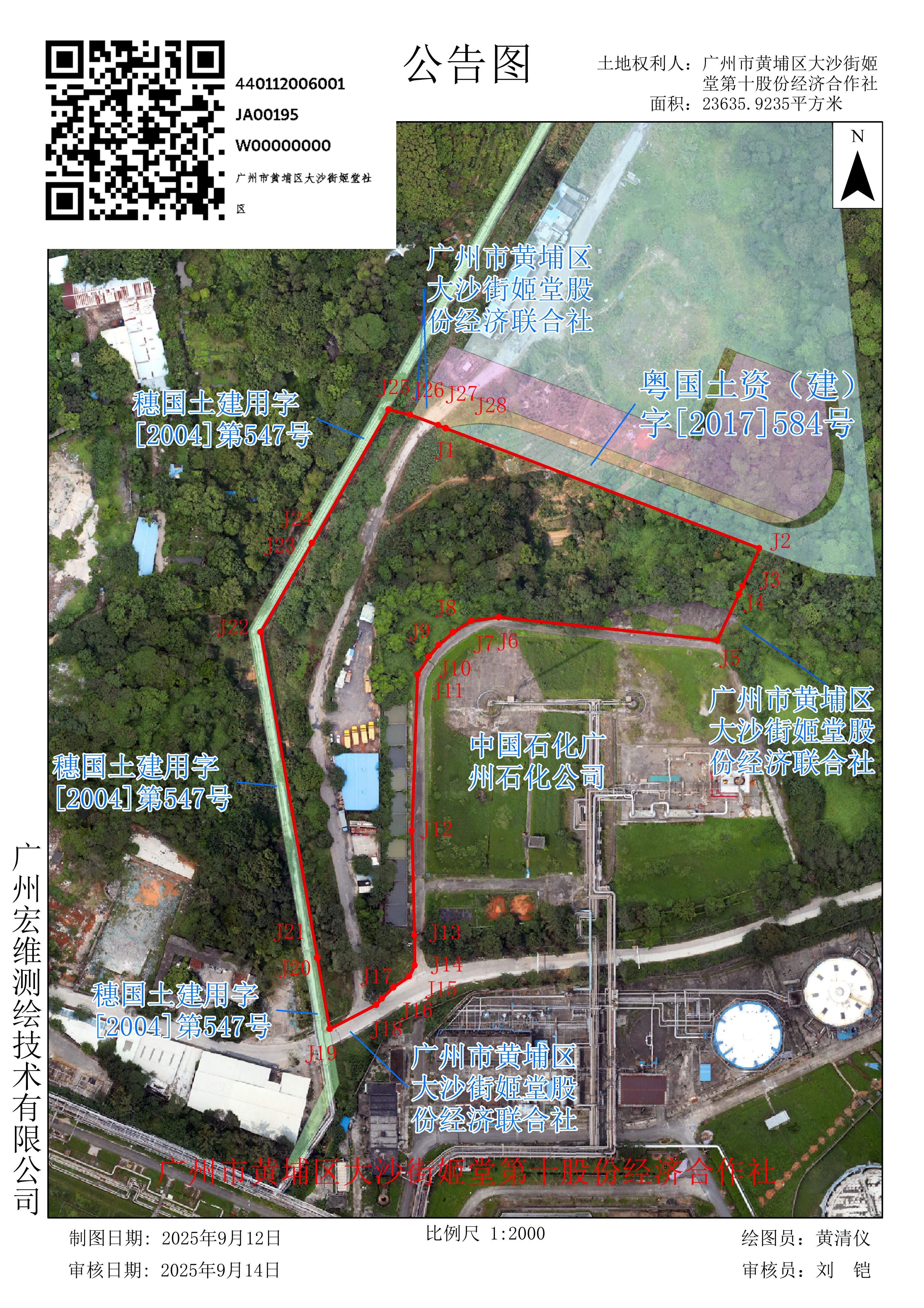 公告图:广州市黄埔区大沙街姬堂第十股份经济合作社集体土地所有权宗地示意图