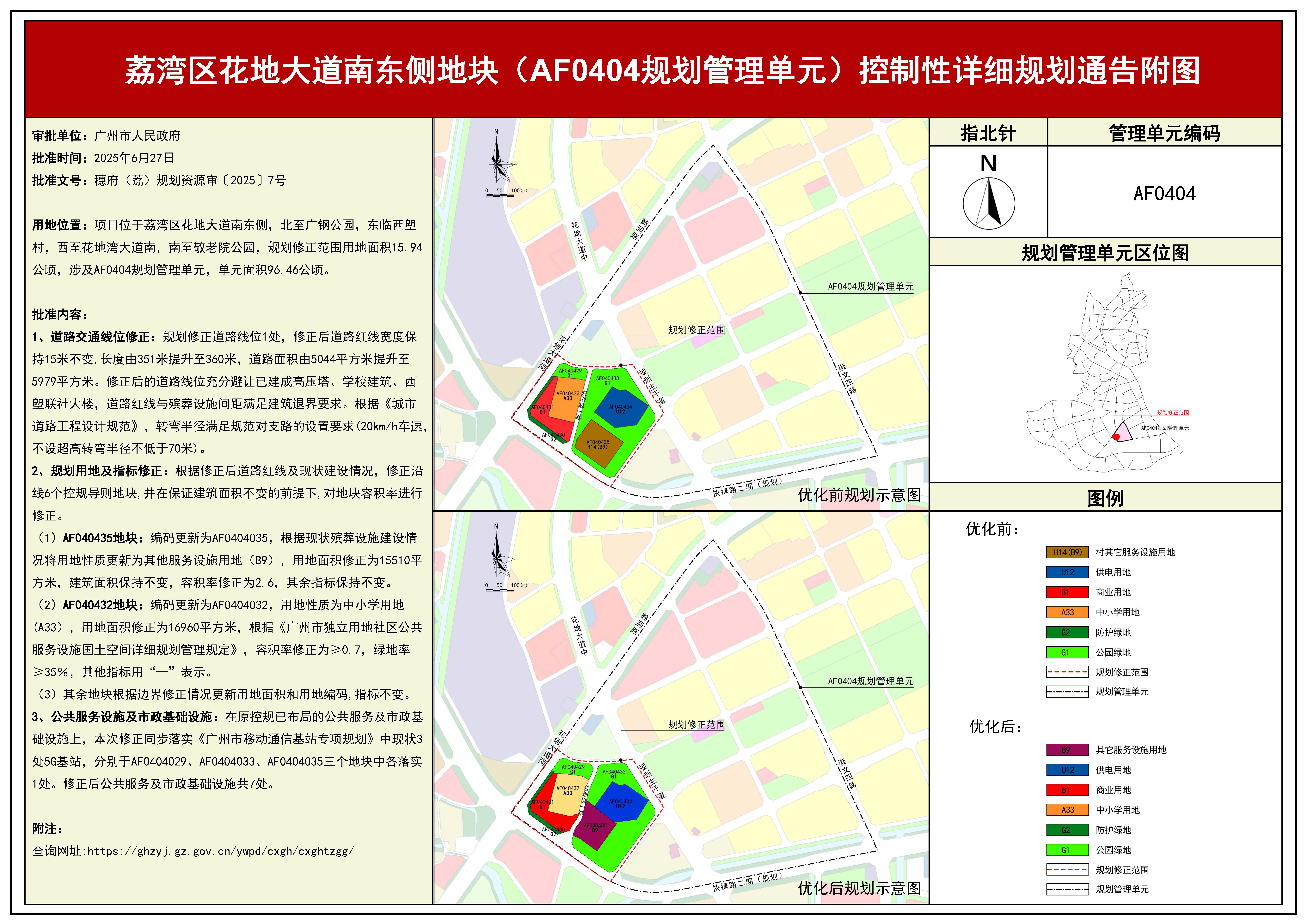 关于公布实施《荔湾区花地大道南东侧地块(AF0404规划管理单元)控制性详细规划修正》规划成果的通告