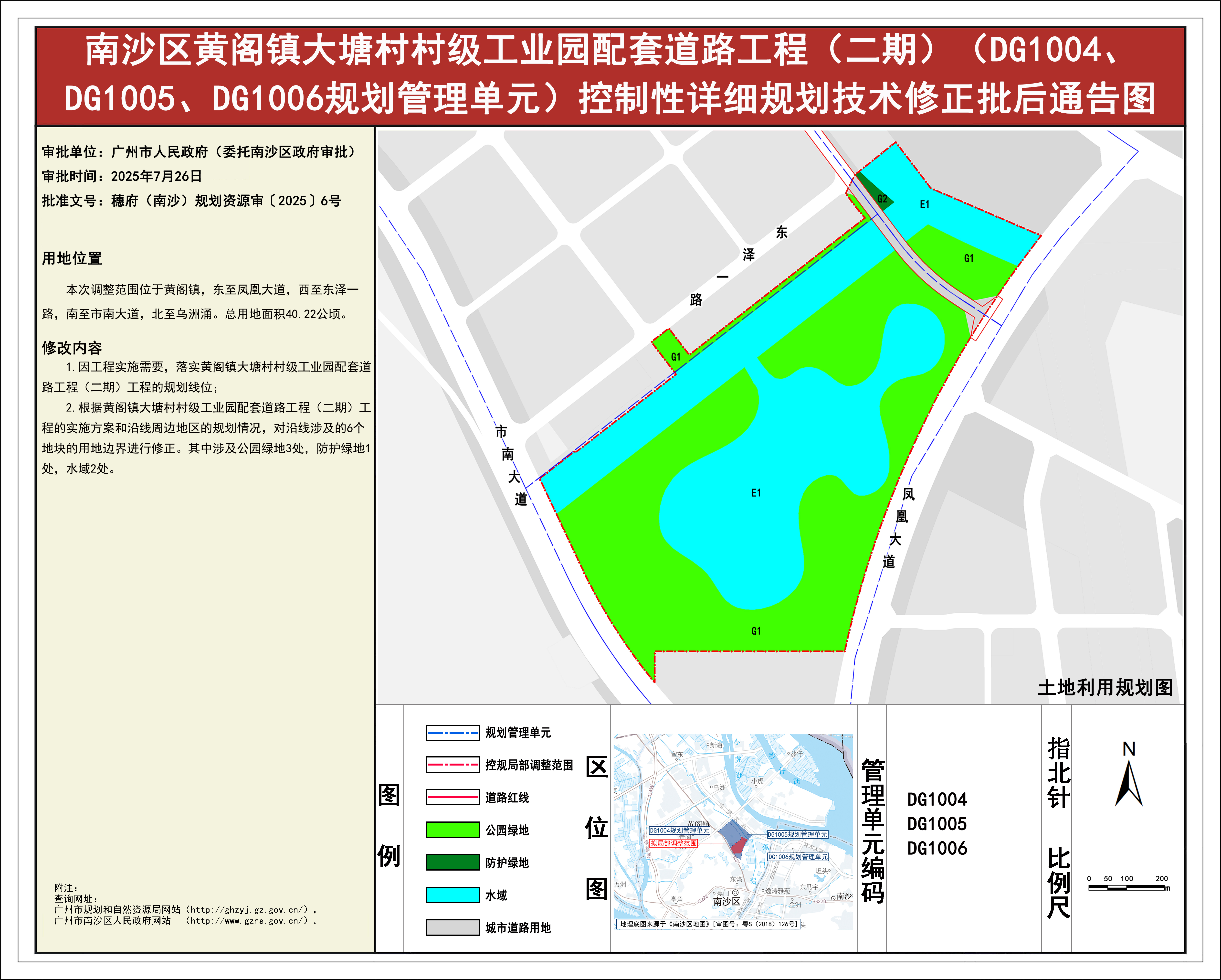 附件:《南沙区黄阁镇大塘村村级工业园配套道路工程(二期)(DG1004、DG1005、DG1006规划管理单元)控制性详细规划技术修正》批后通告图