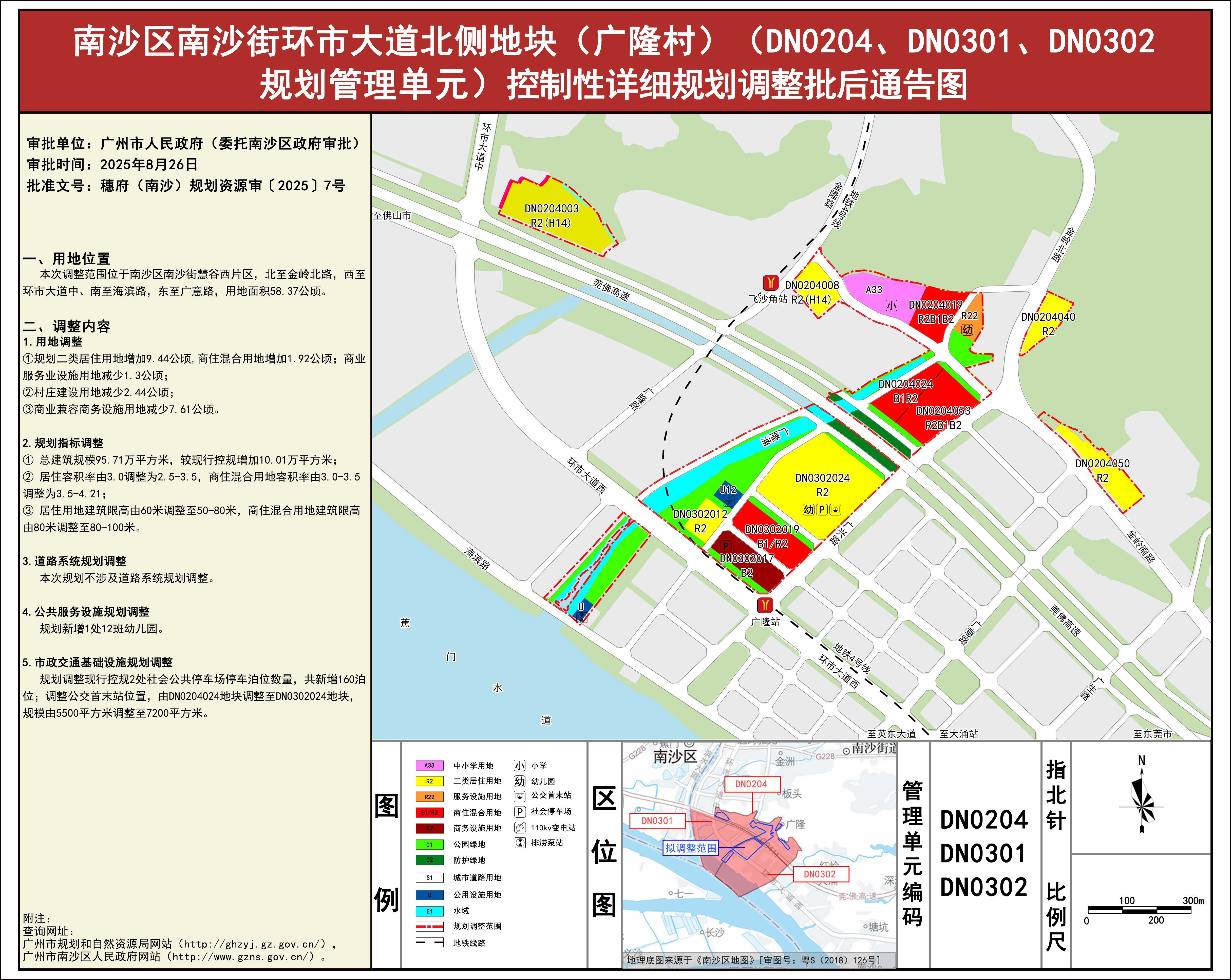 2.《南沙区南沙街环市大道北侧地块(广隆村)(DN0204、DN0301、DN0302规划管理单元)控制性详细规划调整》批后通告图