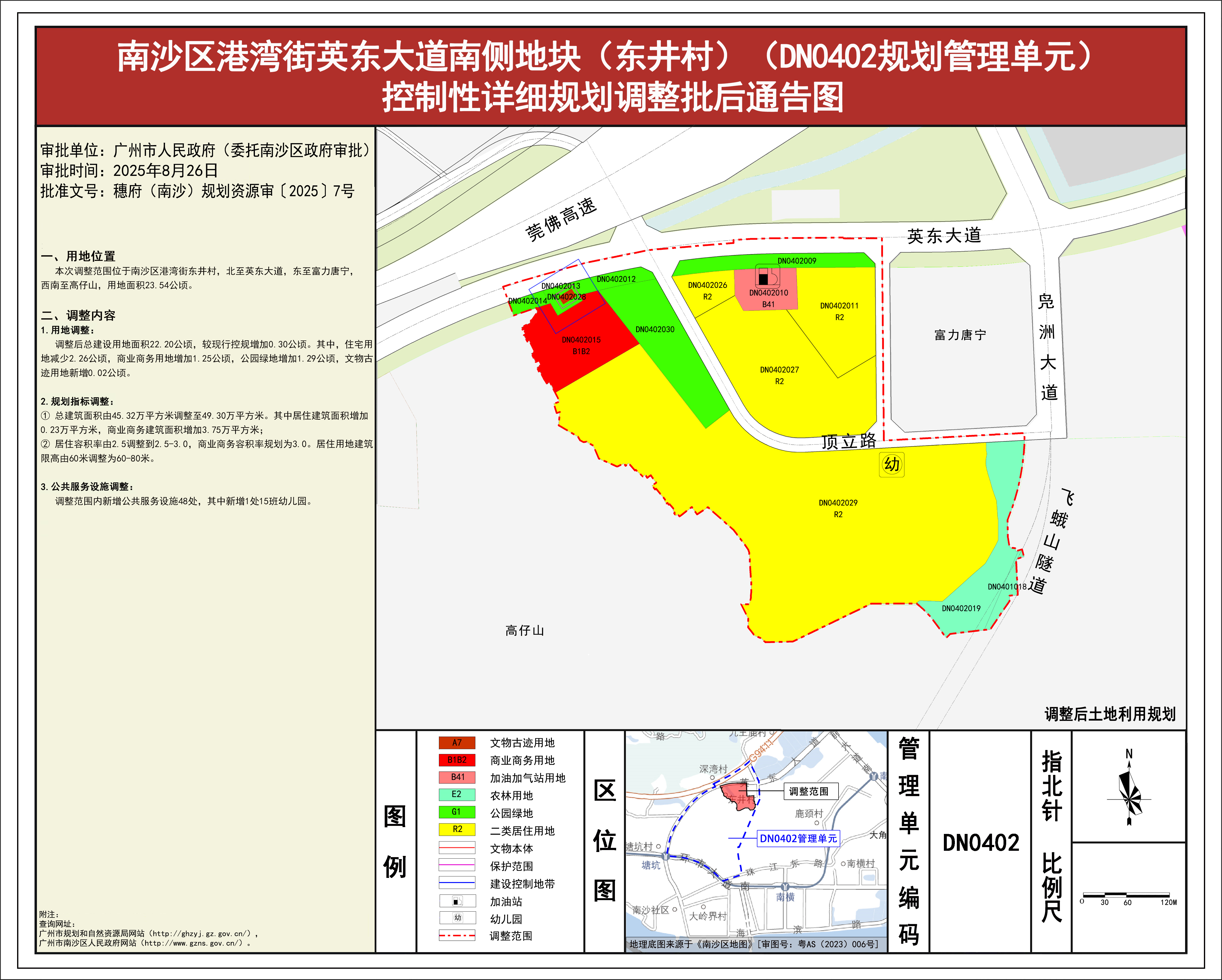 3.《南沙区港湾街英东大道南侧地块(东井村)(DN0402规划管理单元)控制性详细规划调整》批后通告图