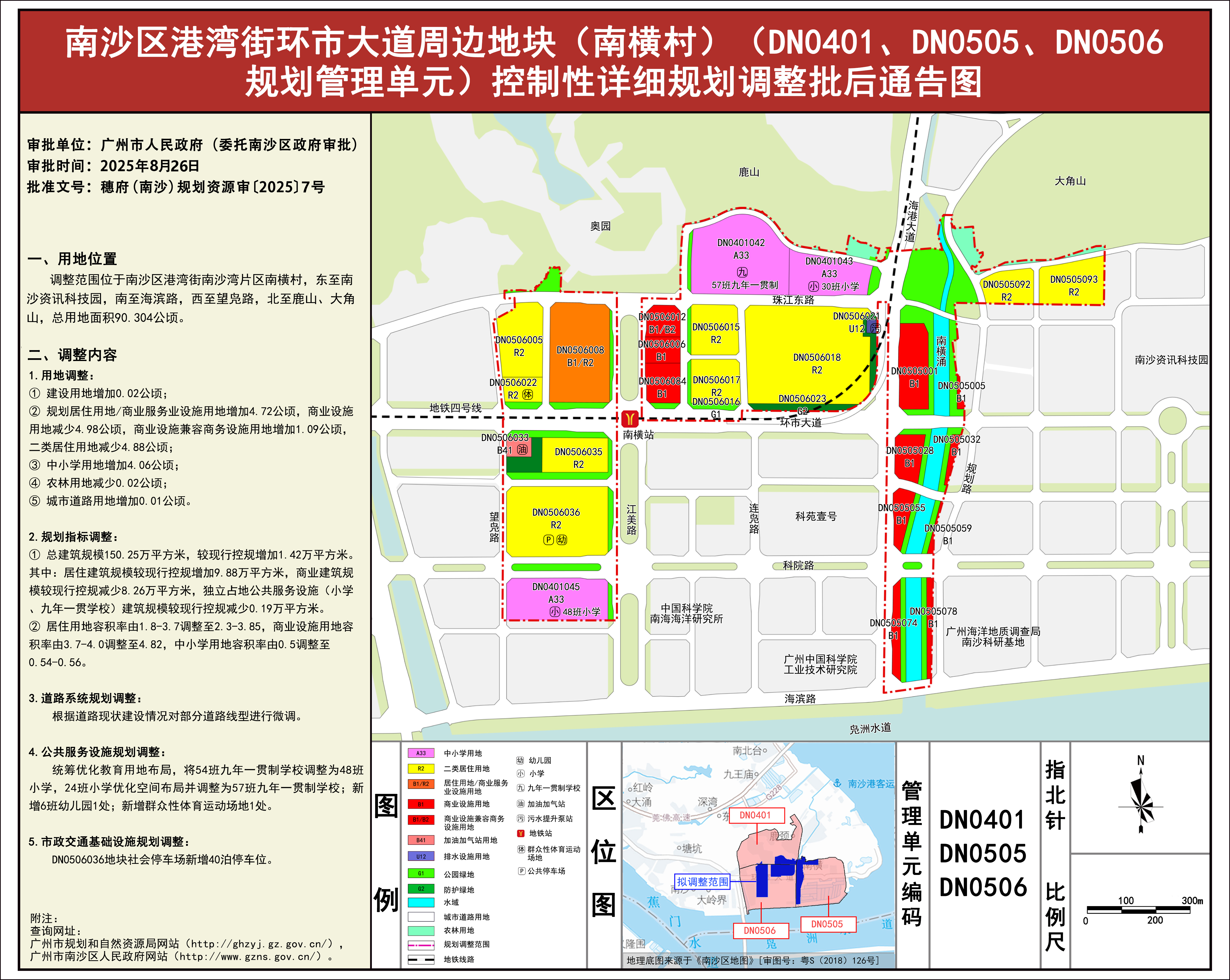 附件:1.《南沙区南沙街环市大道北侧地块(大涌村)(DN0205、DN0303、DN0304规划管理单元)控制性详细规划调整》批后通告图