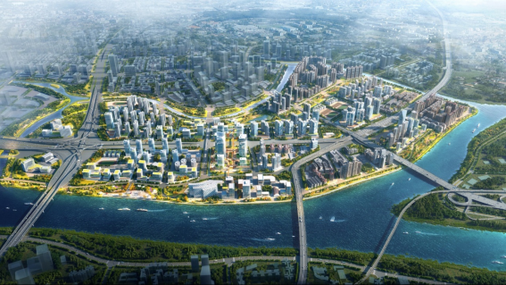 作为启动区,松溪片区围绕华为等龙头企业的产业生态需求,率先推动“生产、生活、生态”三生融合发展。在产业方面,依托华为引擎激活数字科技产业轴带;在生态方面,构建“江河织城”的蓝绿空间网络,重塑滨水生态本底;在宜居方面,实施“安置优先、集中建设”策略,打造“四好”安置新城,切实保障村民权益与居住品质。