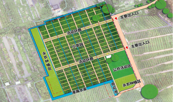 该地块原本是一块撂荒的耕地,现场杂草丛生,在“人民设计师”的共同努力下,蜕变为充满生机的农园,并划分了每块面积约20平方米、共155块的份地菜园用于认领,规划了公共种植区域用于农园研学实践、美育创作等特色活动。