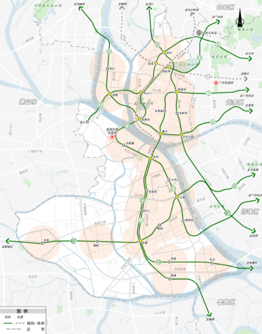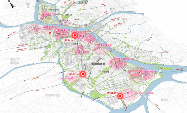 图2:三大轨道枢纽与荔湾重要发展片区关系图