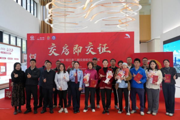 近日,南沙区“中铁·阅江来”二期项目交房现场,23名业主在领取新房钥匙的同时,也拿到了崭新的不动产权证书。这是该项目第二次实现“交房即交证”,标志着南沙区该服务模式自2021年推行以来,已形成常态化运行机制。