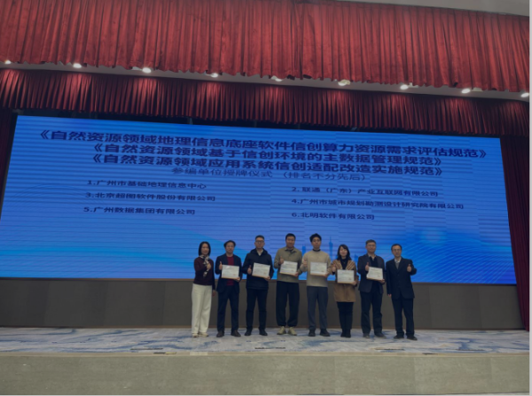 近日,在广州举行的第九届广东数字政务发展论坛会上,广州市基础地理信息中心牵头编制或参与编制的《自然资源领域地理信息底座软件信创算力资源需求评估规范》《自然资源领域基于信创环境的主数据管理规范》《自然资源领域应用系统信创适配改造实施规范》《政务服务大厅人工智能数字人应用规范》等四项团体标准正式获授牌,标志着上述规范获得了行业权威认可,为行业标准化建设作出了重要贡献。其中,由广州市基础地理信息中心牵头编制的自然资源领域信创系列团体标准,从底层架构、数据治理、应用落地三个关键维度,为自然资源领域信息技术应用创新提供了科学、规范的指导,具有重要的参考价值和实践意义。