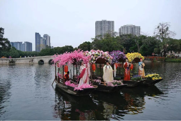 水上花市:2月12日至14日,荔湾湖公园、荔枝湾涌、粤剧艺术博物馆三大片区