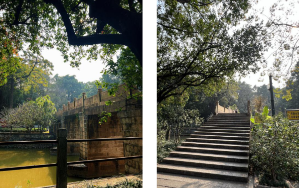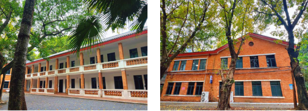 中山大学南校园亦称为康乐园,校园内保存了丰富的历史文化遗产,包括广东省文物保护单位“康乐园早期建筑群”(内含77处建筑)、1处历史建筑以及6处海珠区传统风貌建筑。康乐园近代建筑是我国引进西方建筑技术的典范,其大部分建筑为硬制红砖墙、绿琉璃瓦顶,建筑材料采用钢筋混凝土。