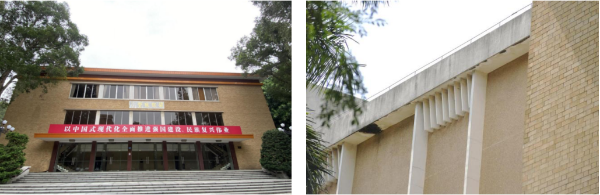 梁銶琚堂,位于中山大学南校园中轴线上,是香港知名实业家梁銶琚先生1982年捐资兴建,钢筋混凝土结构,外立面贴黄色瓷砖,部分墙壁为黄色批荡,建筑形体、结构、构造、细节装饰、材料基本保持原状,风格独特。该建筑反映了广州当代大型教育公建的建设特色,具有特定时代特征和地域特色。该建筑现为海珠区第一批传统风貌建筑。