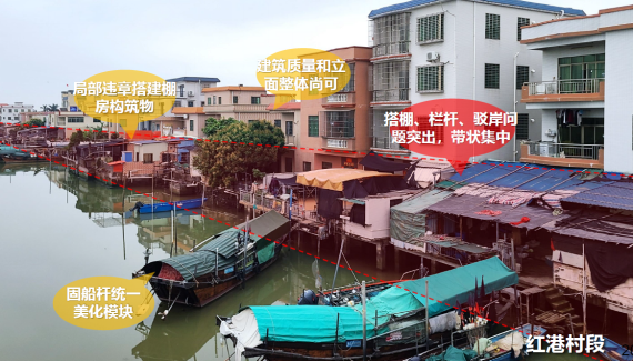 方案应根据《广东省河道管理条例》,在保障行洪安全、满足河道管理要求的前提下,综合考虑在地气候、建筑风貌、民风民俗等要素,重点突出功能性、创新性、低碳性和可实施性,相关有效调和民居建筑与周边环境的关系,营造出具有场所感、趣味感和视觉美感的滨水空间。