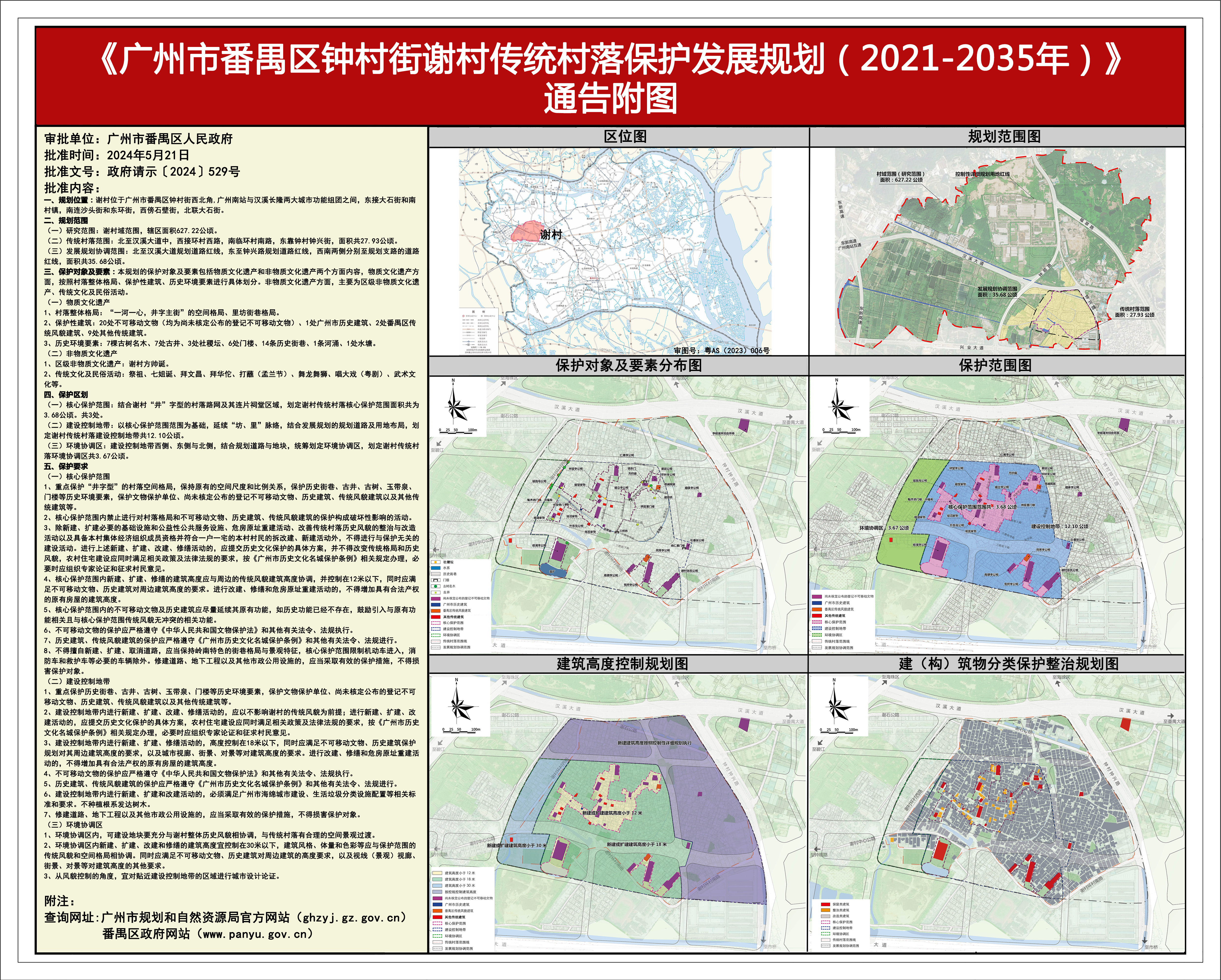 关于公布《广州市番禺区钟村街谢村传统村落保护发展规划(2021-2035年)》的通告